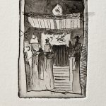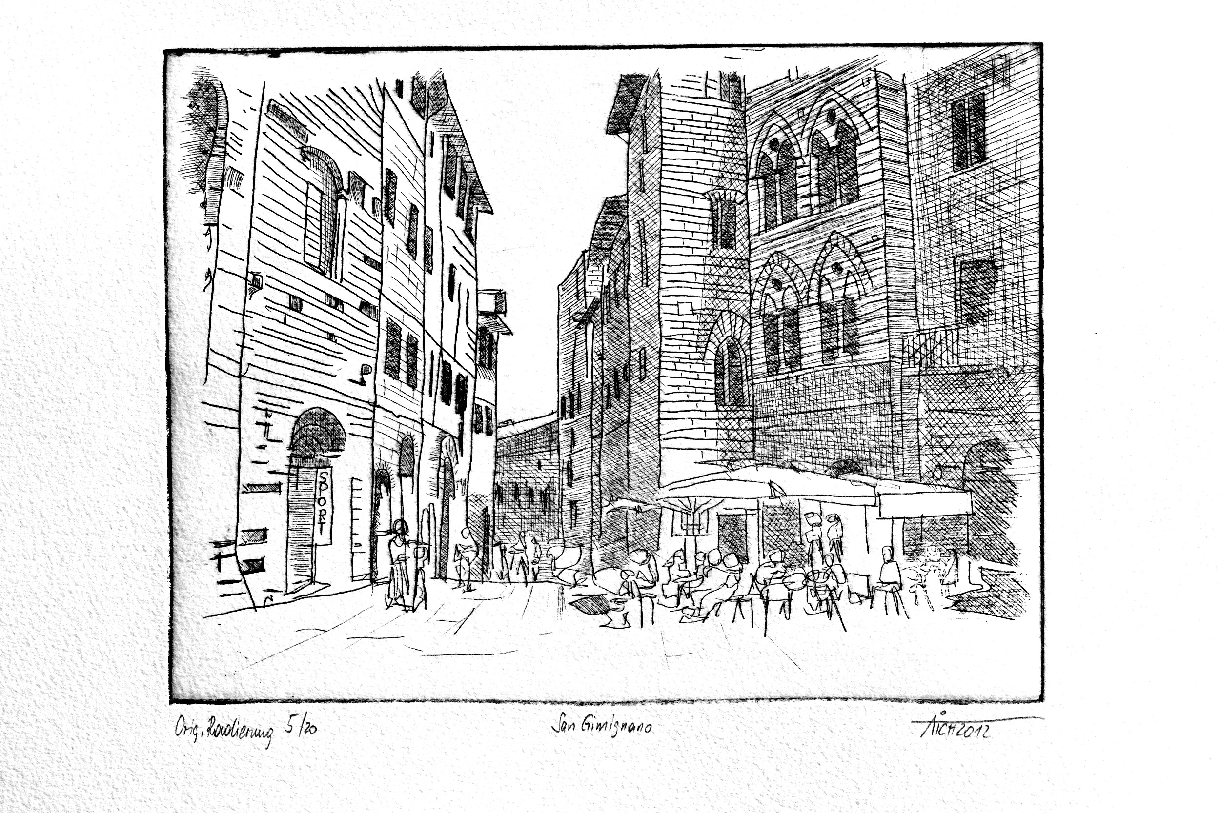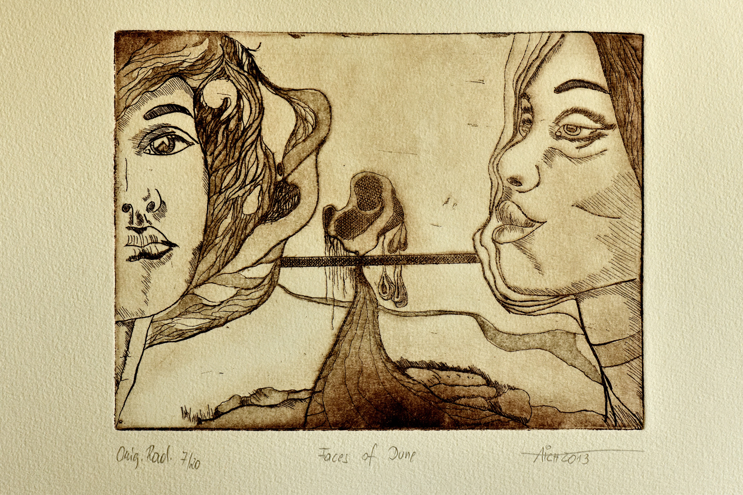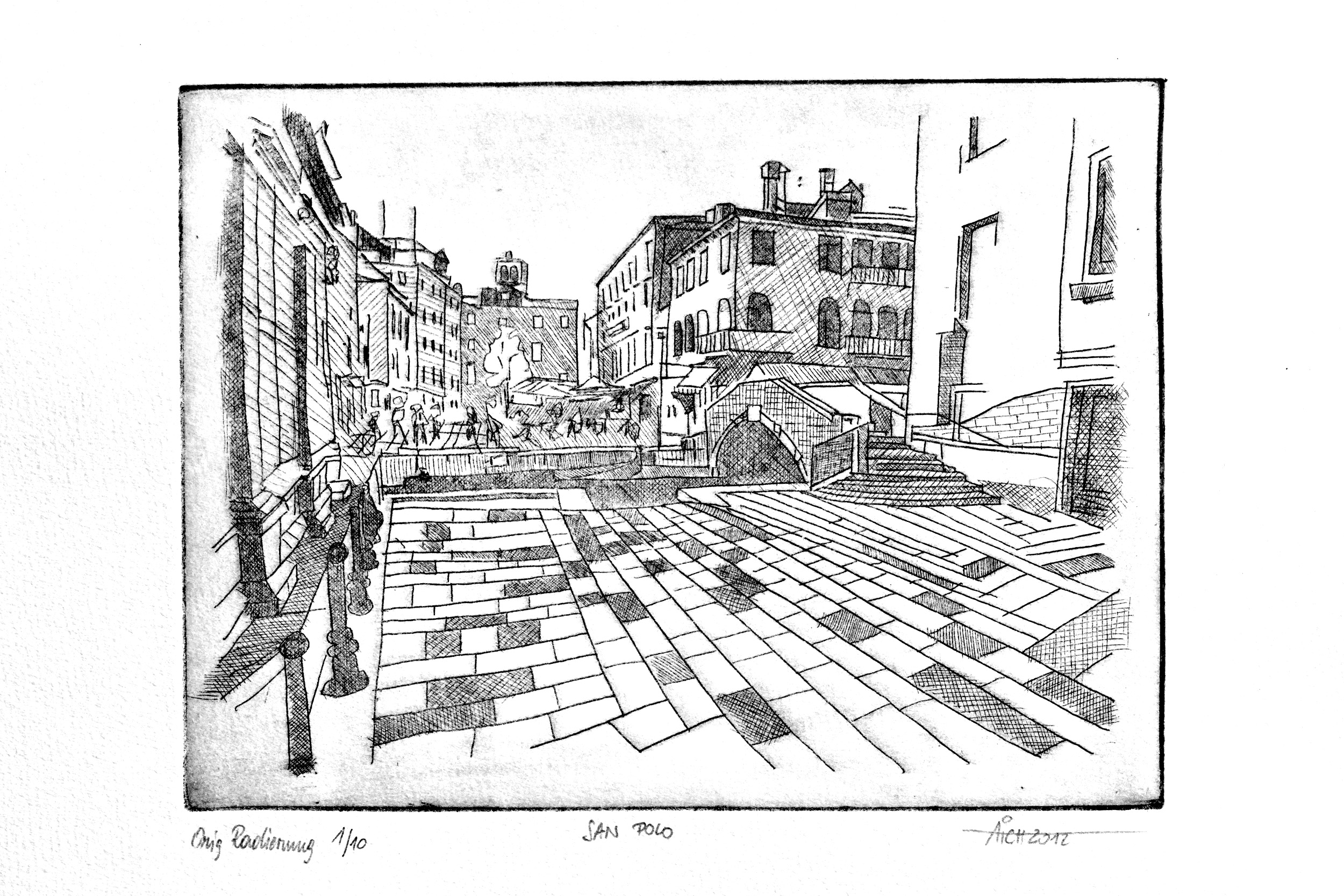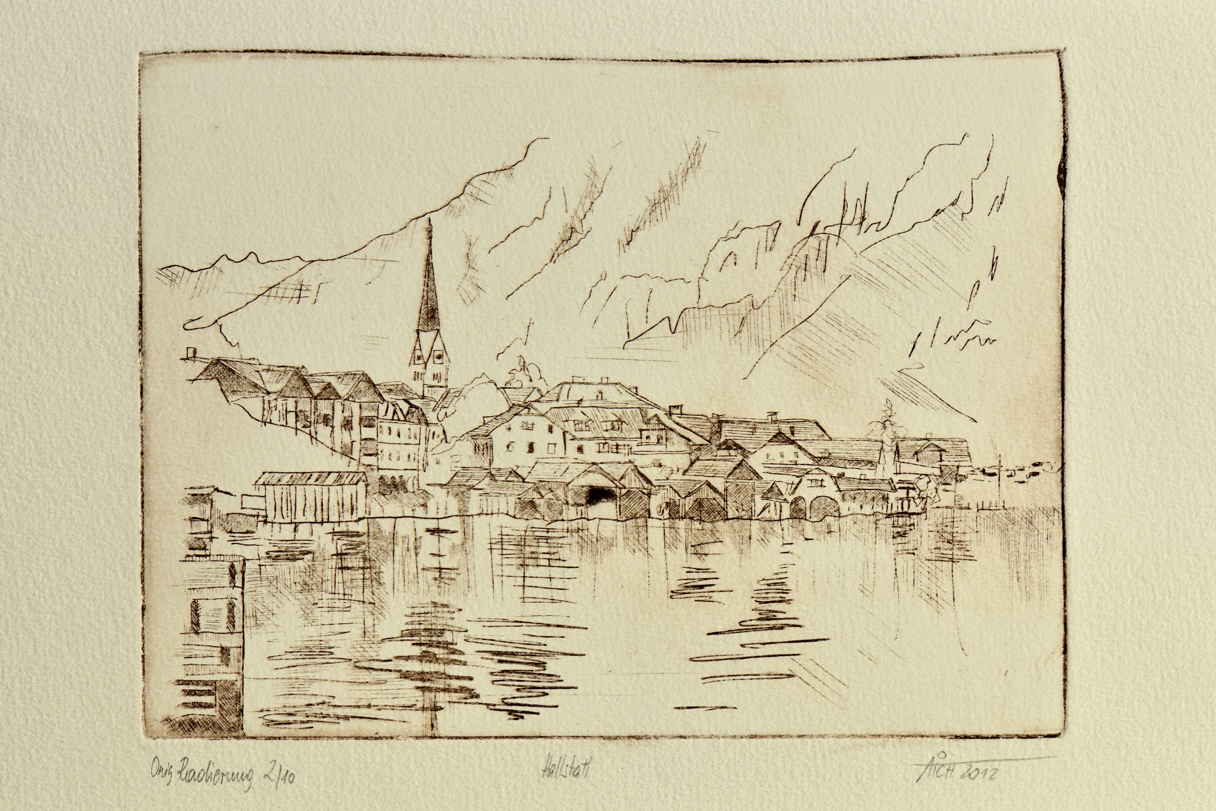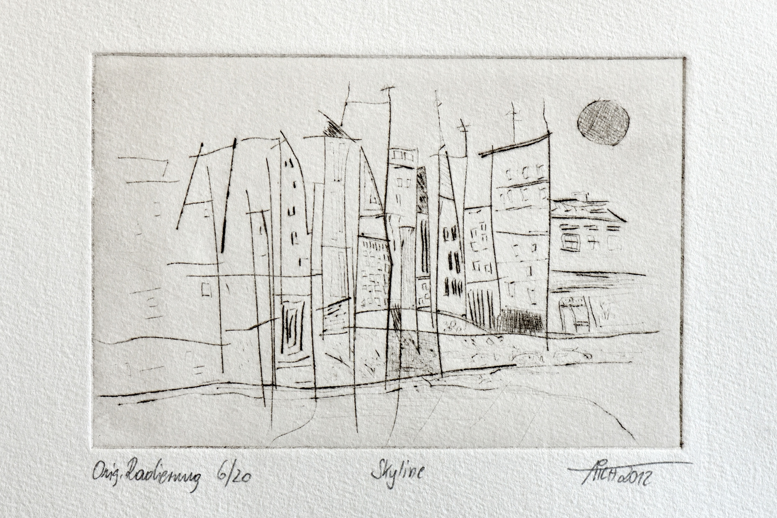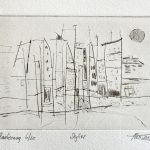 Radierungen sind eine besondere Form der grafischen Kunst, bei der ein Motiv in eine Druckplatte gezeichnet und daraufhin in einem Druckverfahren vervielfältigt wird. Diese Technik erlaubt es dem Künstler, auch feine und detaillierte Strukturen in seine Arbeit einzubringen. Dabei wird die Druckplatte mit einer Säure behandelt, die das darin enthaltene Metall zersetzt und Vertiefungen in die Oberfläche fräst. In diese Vertiefungen wird anschließend Farbe aufgetragen, die dann auf das Papier gedruckt wird.